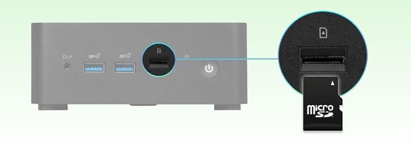 Cubi NUC serisi üzerindeki dahili kart okuyucu ile dosyalarınızı Micro SD kart üzerinden hızla taşıyabilirsiniz.