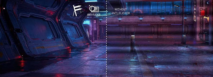 Anti-Flicker ve Less Blue Light teknolojileri ekrandaki kırpışmayı azaltarak ve mavi ışık yayılımını sınırlandırarak konforlu bir izleme deneyimi yaşatır. Böylece göz yorgunluğu yaşamadan saatlerce oynayabilirsiniz.