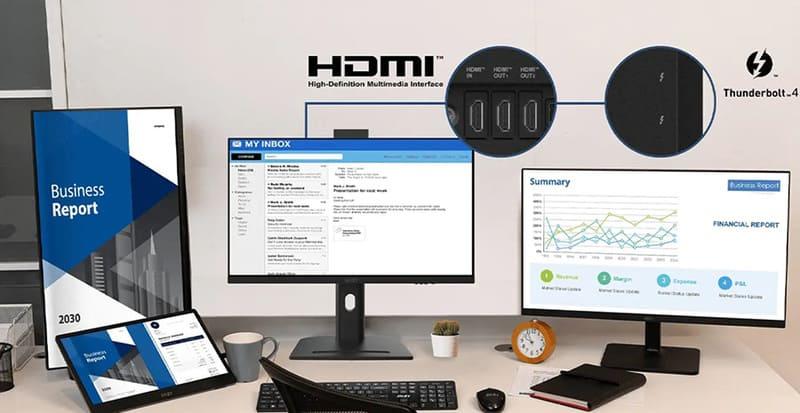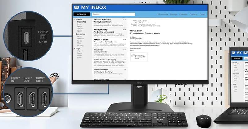Modern AM273QP AI serisi, DP desteği sunan Type-C portu ve bir HDMI™ girişine sahiptir. MSI Instant Display teknolojisi sayesinde bu portlara bir cihaz bağlandığında ekran otomatik olarak açılır. Bu sayede sistemi açmaya gerek olmadan ekranınız harici bir monitör olarak çalışır.
