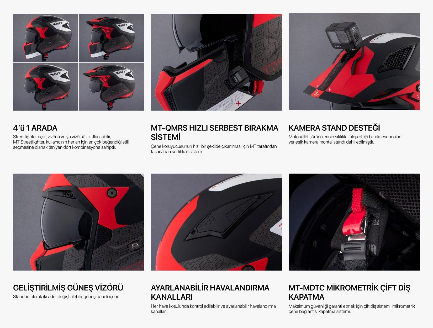 MT Helmet’in geliştirdiği bu yeni tarz kapalı kask, 2022'de oluşturulan yeni Avrupa güvenlik düzenlemeleri ECE 22.06'nın tüm gereksinimlerini eksiksiz karşılar. Bu standart, en zorlu kalite ve güvenlik testlerinden geçen bu kaskın satılmasına ve kullanımını onay verir. Bu kask aynı zamanda DOT onaylıdır. Dahili Güneş vizörüyle desteklenen sürüş. Darbelere dayanıklı polikarbon kabuk yapısı. Çarpma durumunda mükemmel performans sunan polimerlerin birleşiminden oluşan HIRP kabuk geliştirme teknolojisiyle geliştirilmiştir. Ayarlanabilir kapatmalı koruyucu kumaş kılıf. - Kask destek fonksiyonlu koruyucu EPS köpük sistemi.