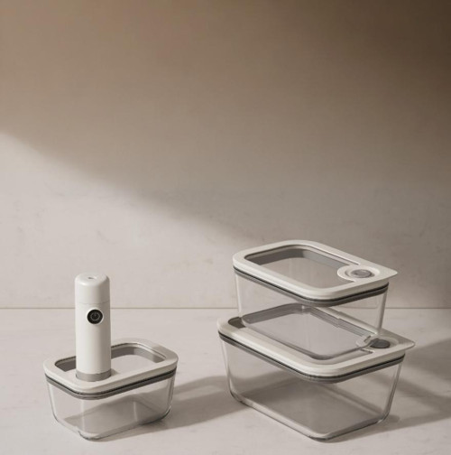 3 farklı boyutta cam saklama kabı ve 1 adet şarjlı vakum makinesi içerir.