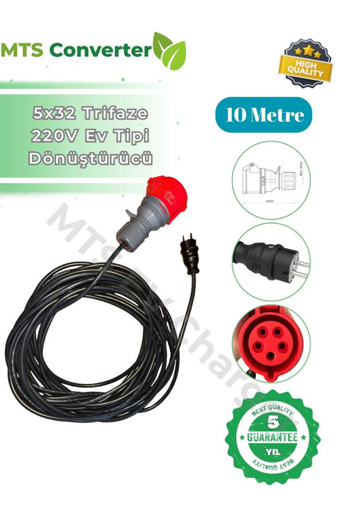 MTSevcharger 5*32 22Kw Trifaze Monofaze 220 V Ev Prizi Dönüştürücü 10 Metre Taşınabilir Elektrik Araç Şarj Cihazı