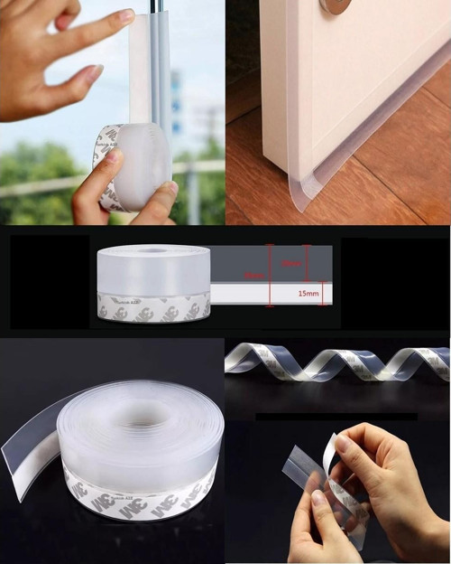 Mucit home 3Metre Rüzgar ve Soğuk Kesici Bant - Şeffaf Rüzgar Geçirmez Silikon Şerit Kapı Pencere Bant