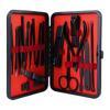nÜrün parçaları paslanmaz çelikten üretilmiş olup, el ve ayak bakımı için gereken tüm malzemeler mevcuttur.Güvenli sterilizasyon , kolay temizlenir, uzun ömürlüdür, korozyonu ve riskini en aza indirir. Ayrıca keskinliği iyileştiren yeni nesil siyah kaymaz parlatma teknolojisi kullanılmıştır, bu estetiğin yanında kavramayı ve kullanımı . Set taşınabilir şık ve sağlam bir deri kaplama kutusu ile birliktedir, tek düğmeyle kolayca açılır. Aynı zamanda çok hafiftir, böylece her gün çantanızda taşıyabilir veya seyahatlerde yanınıza alabilirsiniz. Ürün suni serili kılıfı ile beraber gönderilir. Ürün içeriği; 1 adet büyük tırnak makası1 adet küçük tırnak makası1 adet sivri uç tırnak makası ( Tırnaklara şekil vermek için )1 adet çift uçlu komedon1 adet törpü1 adet et ittirici1 adet çift taraflı tırnak kaldırma aleti1 adet makas1 adet pedikür bıçağı ( ayak tabanları için )1 adet çarpraz pedikür bıçağı ( ayak tabakları için )1 adet kavisli pedikür bıçağı ( ayak tabanları için )1 adet V şeklinde et itme ( Tırnak çevresinde ki ölü deriyi temizleme )1 adet itme çubuğu ( Tırnak içinde ki ve çevresinde ki kirleri )1 adet tırnak temizleme 1 adet cımbız1 adet iğneli komedon1 adet kulak temizlemenn