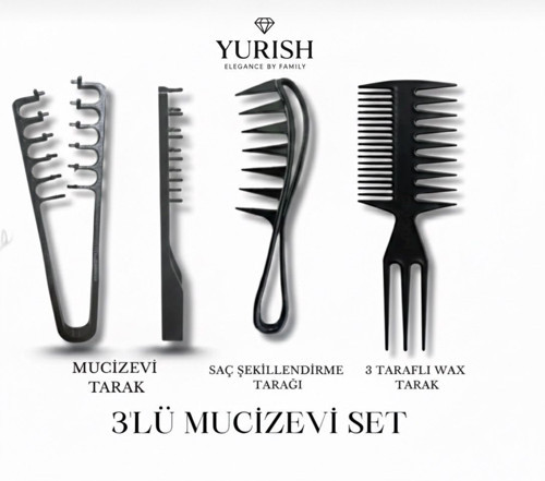Mucizevi 3'lü Tarak Seti Saç Şekillendirme Tüm Saçlar İçin