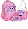 Mu-5796 Pembe Kedi Desenli Okul Çanta Seti 3'lü – Sırt Çantası, Beslenme Çantası ve Kalemlik