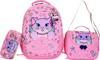 Muggle Mu-5796 Pembe Kedi Desenli Okul Çanta Seti 3'lü – Sırt Çantası, Beslenme Çantası ve Kalemlik