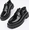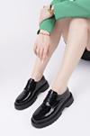Muggo BLANCA Kadın Bağcıklı Hakiki Deri Kalın Taban Günlük Casual Makosen Ayakkabı