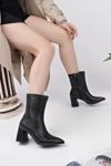 Muggo CODİ Sivri Burun Kalın Topuklu Fermuarlı Kadın Bot