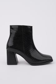 Muggo DİVİNA Küt Burun Kroko Desenli Kalın Topuklu Fermuarlı Kadın Bot