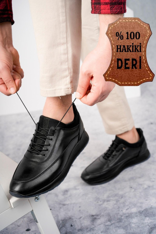 Fosco Siyah Eva Taban Hafif Hakiki Deri Erkek Klasik Ayakkabı 3250 M