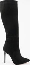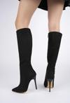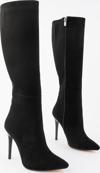 165-streç Siyah Süet Diz Üstü Fermuarlı Günlük Kadın Çizme - Image 1