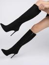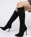 ZenaLook 165-streç Siyah Süet Diz Üstü Fermuarlı Günlük Kadın Çizme
