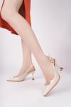 Muggo HEELS Arkası Açık Toka Detaylı Günlük Klasik Topuklu Kadın Stiletto Ayakkabı