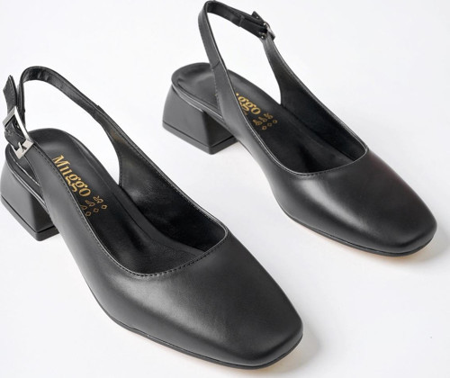 The blunt toe cut integrates with patent leather shiny and leather materials, allowing you to achieve a simple and elegant look. The thick heel, which has been the trend of recent years, appears before you with a different design in this model. This model, which will accompany you in your elegance with your daily clothes or on special occasions, is now on sale for you.