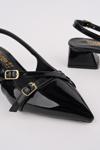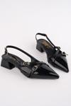 Kadın Köşeli Burun Zincir Tokalı Topuklu Ayakkabı Siyah Rugan 916721085 - Image 1