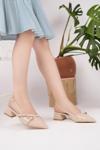 Muggo LUMİNA Pointed Toe Open Back Belt Detailed Two-Strap Women's Short Heeled Shoes