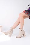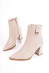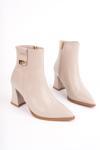 Muggo LUXERA Sivri Burun Toka Detaylı Fermuarlı Kalın Topuklu Kadın Bot