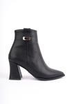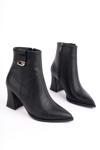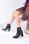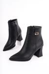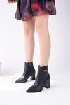 Muggo LUXERA Sivri Burun Toka Detaylı Fermuarlı Kalın Topuklu Kadın Bot
