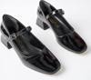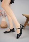 The blunt toe cut integrates with the patent leather shiny material, allowing you to achieve a simple and elegant look. The thick heel, which has been the trend of recent years, appears before you with a different design in this model. This model, which will accompany you in your elegance with your daily clothes or on special occasions, is now on sale for you.