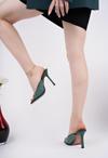 Muggo PUJA Blunt Toe Thin Heeled Stoned Women's Heeled Slippers