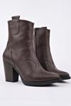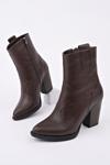 Muggo WESTON Sivri Burun Dikiş Detaylı Fermuarlı Kalın Topuklu Kovboy Kadın Bot