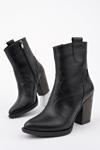 Muggo WESTON Sivri Burun Dikiş Detaylı Fermuarlı Kalın Topuklu Kovboy Kadın Bot
