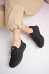 Bestof 041 Siyah-Beyaz Sneaker Düz Taban Spor Ayakkabı