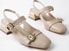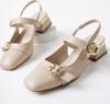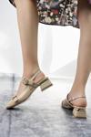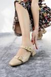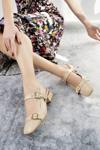 Muggo YUQİ Arkası Açık Küt Burun Çift Kemerli Kadın Günlük Klasik Kısa Topuklu Ayakkabı