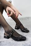 Muggo YUQİ Arkası Açık Küt Burun Çift Kemerli Kadın Günlük Klasik Kısa Topuklu Ayakkabı