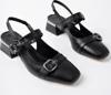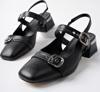 YUQİ Arkası Açık Küt Burun Çift Kemerli Kadın Günlük Klasik Kısa Topuklu Ayakkabı