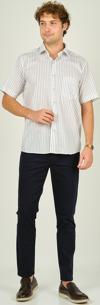 Geniş Ve Rahat (Bol) Kesim Cepli Armürlü Klasik Kısa Kol Erkek Gömlek - Image 1