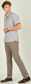Detay: Kısa kollu, tek cepli, çizgili gömlek ;