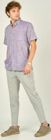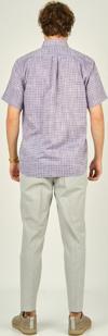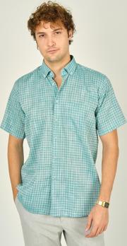 Detay: Kısa kollu, tek cepli, kare desenli, yaka düğmeli gömlek ;