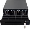 MÜHLEN EU 2480 modeli para çekmecesi, 8 adet madeni para gözüne, 4 adet metal pençeli kâğıt para gözüne ve 1 adet gizli para gözü yuvasına sahiptir.