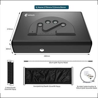 Son derece kompakt boyutlara sahip MÜHLEN Gun Safe 15D modeli, sadece 28x21x6cm ölçülerindedir. Küçük ölçülere sahip olması nedeni ile her alanda rahatlıkla taşınabilir ve sahip olduğu çelik ip ile kolayca evde veya arabada sabit bir yere bağlanabilir.