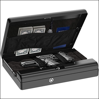 MÜHLEN Gun Safe 15D modeli, son derece kompakt ve taşınabilir yapıya sahip olmasının yanı sıra 270x152x56mm ölçülerinde son derece geniş iç alan yapısına sahiptir. Bu genişlik aynı anda iki adet saat muhafaza ederken kişisel para ve değerli eşyaları da aynı anda muhafaza eder.