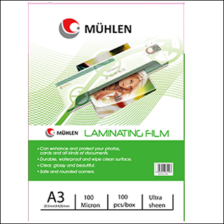 Her derece ısıya dayanıklı Mühlen Beutel serisi laminasyon filmleri, A3, A4, A5, A6 ebatlarında üretilmiş olup, (Bu model A3 Boyutunda ve 100 Mikron Kalınlığındadır.) her bir boyuta ait 100, 125, 150 micron kalınlıklara sahiptir.