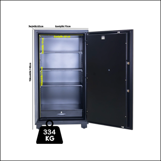 MR 140A modeli, yangına dayanıklı, zırhlı ve çifte kilit/şifre sistemi ile donatılmış son derece kreatif yapıya sahip büyük boy çelik kasadır.