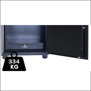 MR 140A modeli, 334 kg ağırlığında, 4 tekerlekli (çıkartılabilir) ve güçlü kilit sistemi ile donatılmış yangına ve hırsızlığa karşı sertifikalı çelik kasadır.
