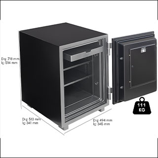 Alman mühendisliğinin titizliği ve Kore üretiminin kalitesini bir araya getirerek, değerli eşyalarınız için üstün koruma sağlamak üzere tasarlanmıştır. Yangına dayanıklı özellikleri, zırhlı yapısı güvenlik konusunda sınırları zorlamaktadır. Çift açma sistemi sayesinde kullanıcıya maksimum kolaylığı ve güvenliği sağlayan model 111 kg. Ağırlığındadır.