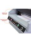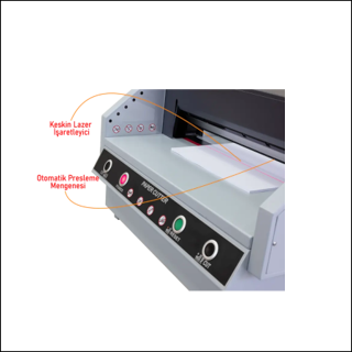 Otomatik elektrikli presleme ve kesme sistemine sahip MÜHLEN ProCut C333M modeli, 450mm kesim haznesine sahip olup, A2 belgeleri kısa tarafından, A3 ve daha küçük belgeri ise her yönü ile kesebilmektedir.