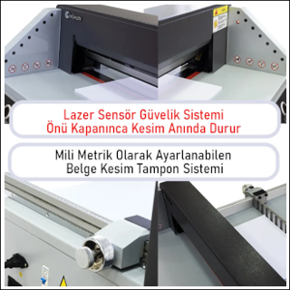 - » Güvenlik için aynı anda çift buton ile belge kesme