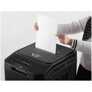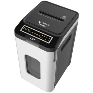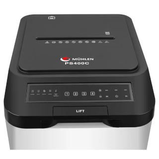 Şifreli, otomatik besleme haznesine konan 350 Adet (Max.) kağıdı, sırayla kendiliğinden imha ederek zamandan tasarruf sağlayan MÜHLEN PS-400-C evrak imha makinesi modeli, 53 Litrelik atık kutusu haznesine sahiptir.
