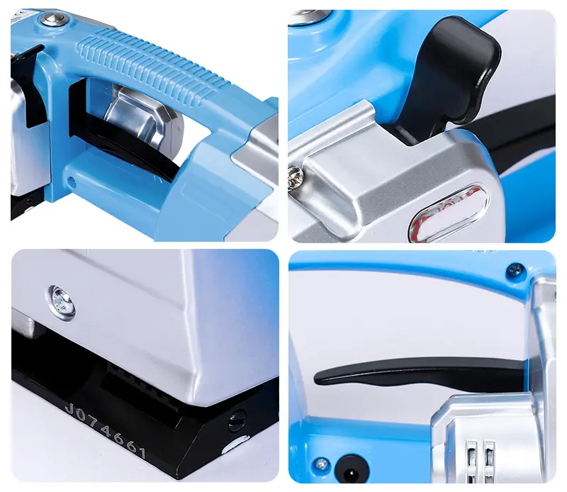Eşyaların çemberini sıkmak için güçlü DC motor ve sistemine sahip model gün boyu yoğun kullanım için uygundur. Makine 100~200mm/Saniye arasında kayış gerebilmektedir.