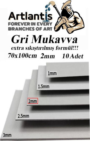 Artlantis Mukavva Gri 2 mm 70x100 cm 10 Adet Sert Karton Ekstra Sıkıştırılmış 70*100 Mukavva Gri Renkli 10 Adet