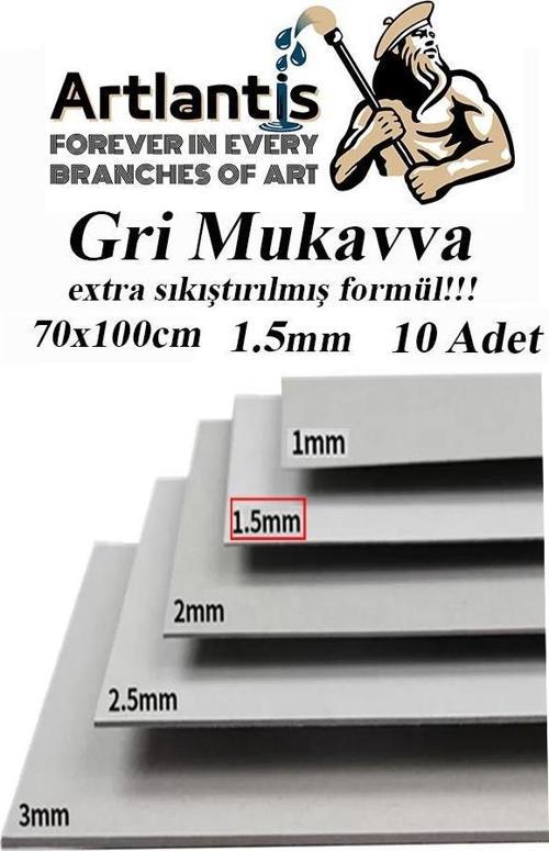 Artlantis Mukavva Gri 1.5mm 70x100 cm 10 Adet Sert Karton Ekstra Sıkıştırılmış 70*100 Mukavva Gri Renkli 10 Adet