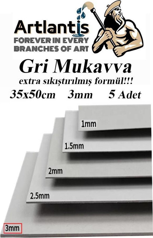 Artlantis Mukavva Gri 3 mm 35x50 cm 5 Adet Sert Karton Ekstra Sıkıştırılmış 35*50 Mukavva Gri Renkli 5 Adet