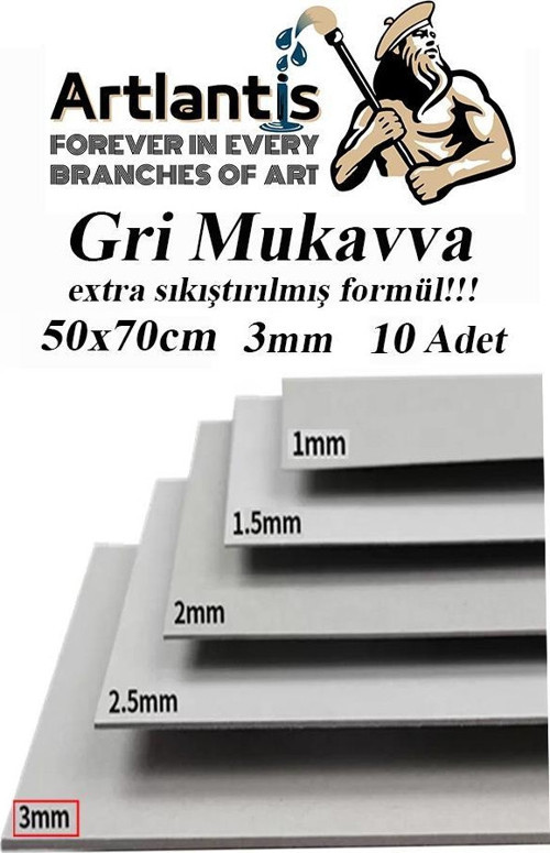 Artlantis Mukavva Gri 3 mm 50x70 cm 10 Adet Sert Karton Ekstra Sıkıştırılmış 50*70 Mukavva Gri Renkli 10 Adet