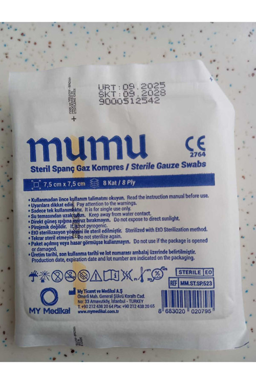 STERİL GAZLI BEZ 7,5X7,5 8 KATLI 5Lİ BİR PAKETTE 5 ADET VARDIR .